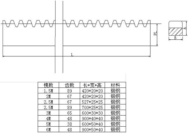 齒條分直齒齒條和斜齒齒條,分別與直齒圓柱齒輪和斜齒圓柱齒輪配對使用