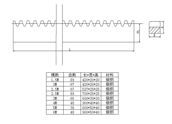 齒條外形尺寸、規(guī)格對照表