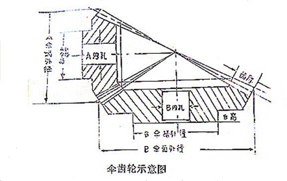 傘齒輪示意圖和外形尺寸、型號規格對照表