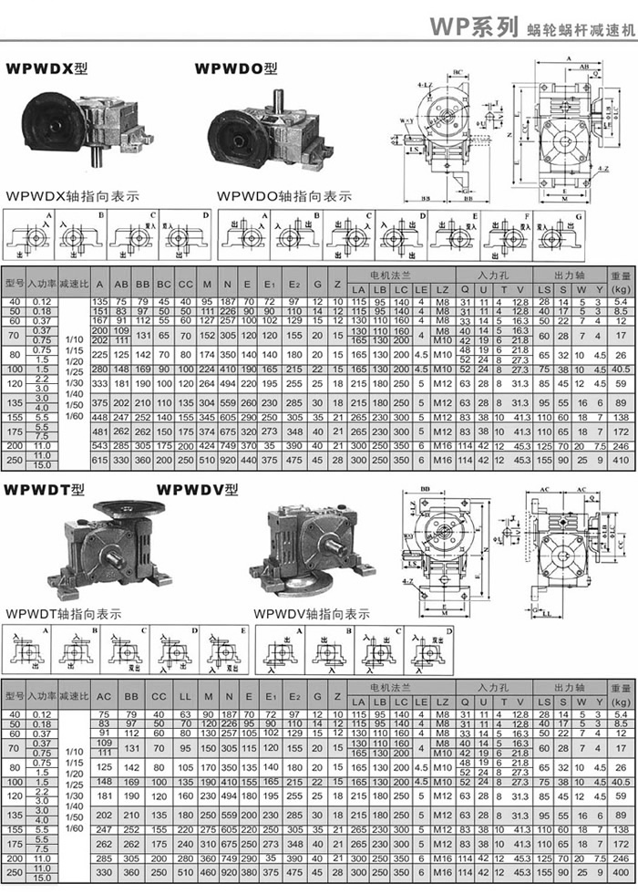 WPWDX、WPWDO、WPWDT、WPWDV蝸輪減速機安裝尺寸及重量