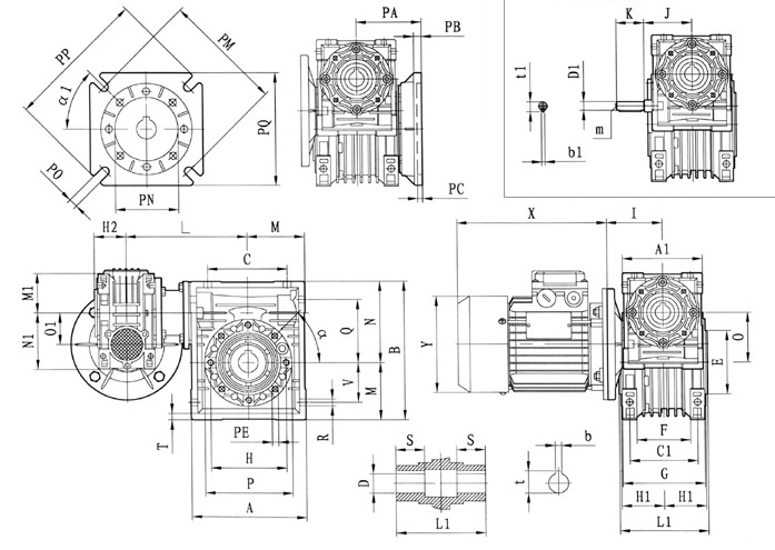 型號 N1 O 01 P Q R S T V PE α b b1 t t1 m Kg
