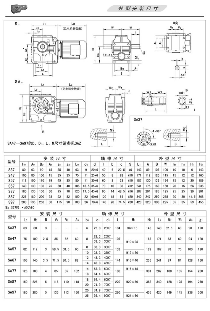 上一篇:S斜齒輪蝸桿減速機(jī)SAT…(軸裝式扭力臂安裝)、SAZ…(軸裝式端面小法蘭安裝)外形安裝尺寸