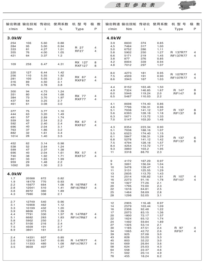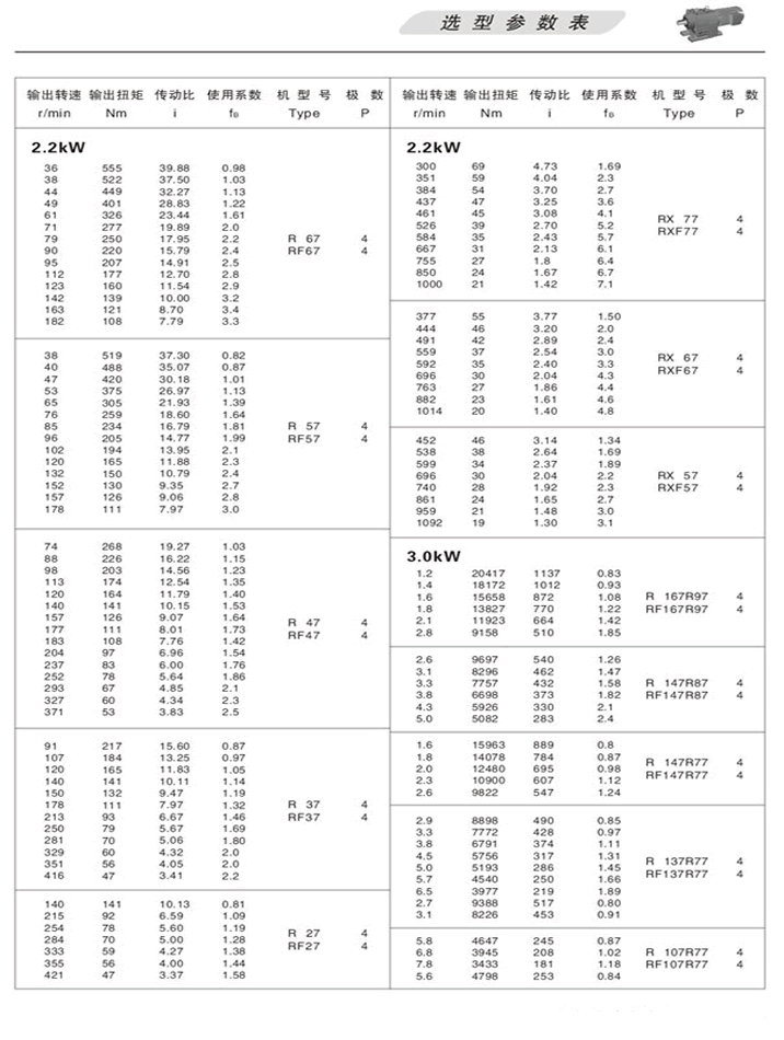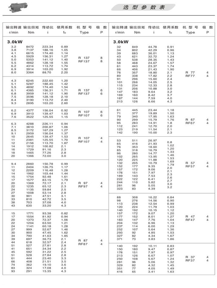 R斜齒輪減速機選型參數表3KW