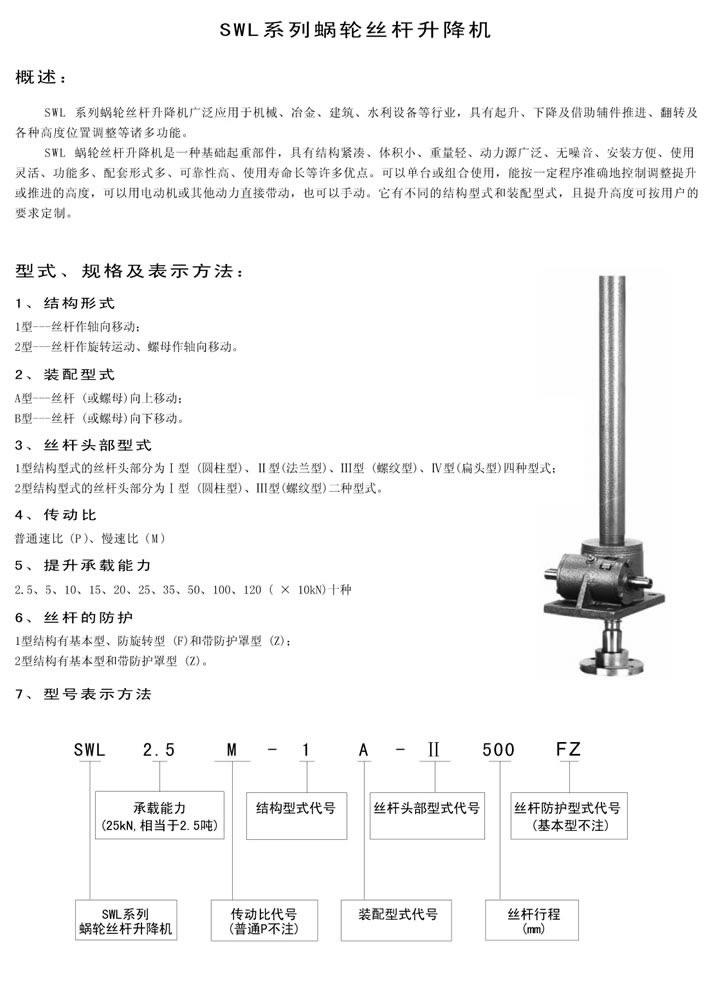 SWL絲桿升降機的概述\型號表示方法